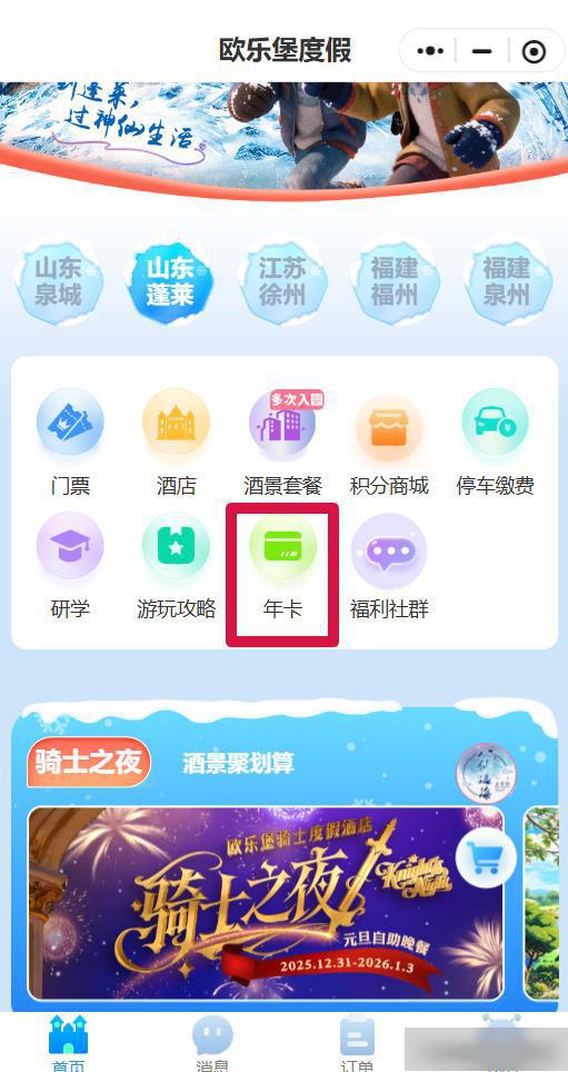 一、微信小程序搜索“欧乐堡度假”点击进入。